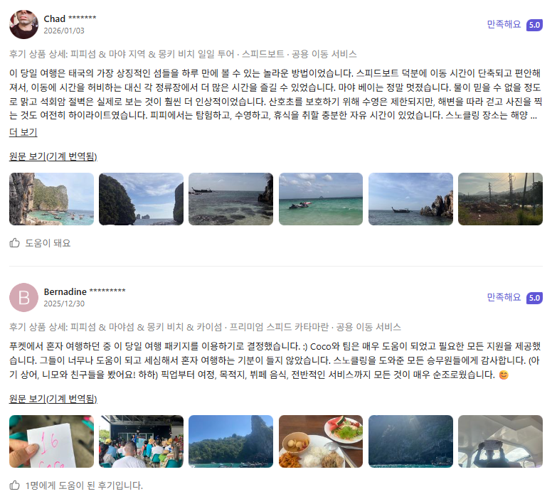 피피섬 & 마야섬 & 카이섬 & 뱀부섬 일일 투어 (푸켓 출발) - 클룩 Klook 한국