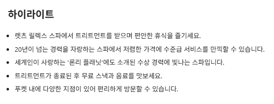 고급스러운 호텔 스파는 가격이 부담스럽고 길거리 마사지는 위생이나 실력이 걱정될 때 선택하기 딱 좋은 중간 지점의 스파라고 볼 수 있습니다.
