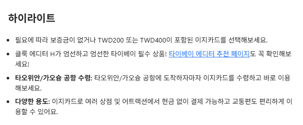 이번 대만 방문이 이지카드와 함께 더욱 즐겁고 매끄러운 추억으로 가득 차길 진심으로 응원하겠습니다.