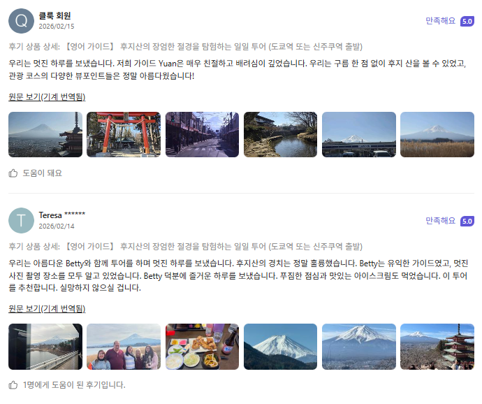 다만 후지산의 특성상 날씨가 좋지 않아 산 전체를 보지 못했을 때의 아쉬움을 토로하는 경우도 있지만 투어 자체의 운영 시스템이나 차량의 청결도, 안전 운전에 대해서는 이견이 없을 정도로 높은 신뢰를 보여주고 있습니다.